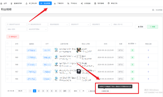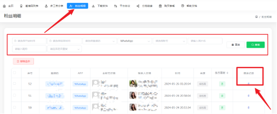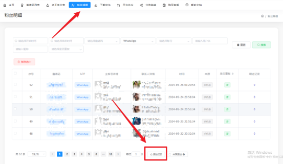 - 设置完成之后,在后台---【粉丝明细】---可随时查询---【跟进记录】---等一系列信息