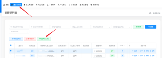 1. 点击【邀请码分组】,点击【创建分组】 输入分组名称